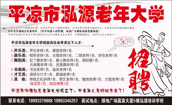 平涼泓源老年大學招聘教師數名