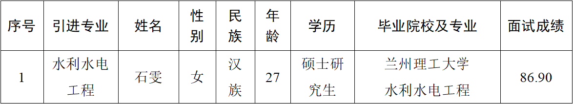 2023-05-26根據(jù)《2023年平?jīng)鍪幸M(jìn)急需緊缺人才公告》,市產(chǎn)投集團(tuán)對2023年擬引進(jìn)的3名急需緊缺人才完成了資格審查、面試等工作程序,已完成2名擬引進(jìn)人才考察、體檢工作,其余1名擬引進(jìn)人才為應(yīng)屆生?,F(xiàn)予以公示,接受社會各界監(jiān)督。如發(fā)現(xiàn)在德、能、勤、績、廉等方面