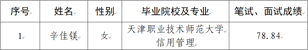 2023-09-03根據(jù)《平?jīng)鍪?023年就業(yè)見習(xí)崗位公告(第四期)》,經(jīng)組織報(bào)名、資格審查、筆試、面試、考察、體檢等程序,擬確定辛佳鎂同志為見習(xí)對象,現(xiàn)予以公示。一、公示對象簡要情況二、公示和受理反映時(shí)間公示時(shí)間:2023年9月4日至9月8日,共5個(gè)工作日受理時(shí)間:每