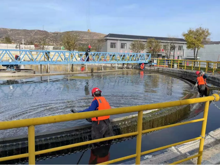 文明創(chuàng)建我先行——泓源城東污水處理公司全面清洗二沉池 全力保障出水達標(biāo)排放